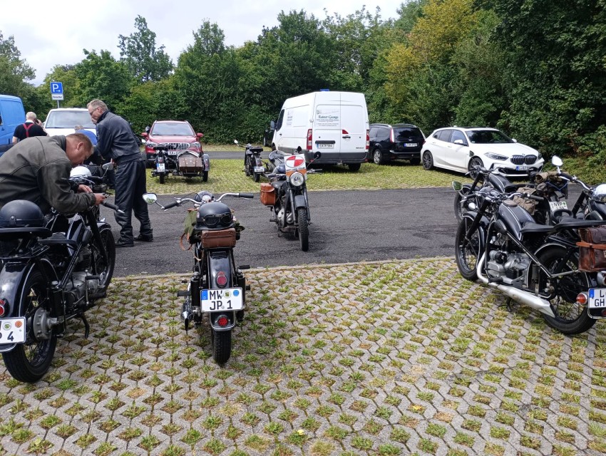 Unterwegs gab es eine Pause am BMW Werk Eisenach, mit einer Werksführung und Mittagsessen in der Werkskantine. Zu diesem Zeitpunkt legte der Regen auch eine Pause ein.